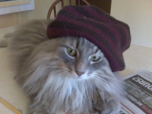 Here is Wilson wearing a hat trying to nail the grunge look even though grunge left the building about 15 years ago. What does he know, he’s just a cat.